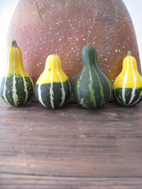 “かぼちゃ四兄弟”が ちょこんと