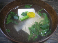先日の鰤のハーブ焼き。 潮汁は美味。 甘辛の豚肉と高菜で